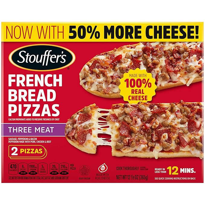 STOUFFER’S French Bread Three Meat Frozen Pizza offers a tasty and practical solution for those seeking convenience without compromising on flavor. A perfect fit for families with active lifestyles, it’s priced at $6, making it an affordable and essential addition to your frozen food collection.