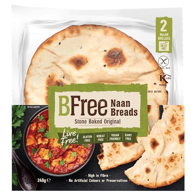 Discover the delight of BFree Stone Baked Original Naan Breads, an exquisite culinary addition for those seeking the best shop bought naan bread. Crafted from a special blend of flours, these high-fiber, gluten-free naans offer a stone-baked freshness that pairs perfectly with your favorite dishes.