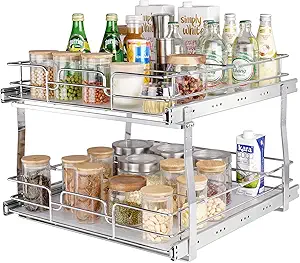 Transform your pantry with the VEVOR 2 Tier Pull Out Cabinet Organizer, the best slide out shelves for organizing and maximizing small spaces effortlessly. Discover unparalleled convenience and a sleek chrome finish that blends seamlessly with any decor style.